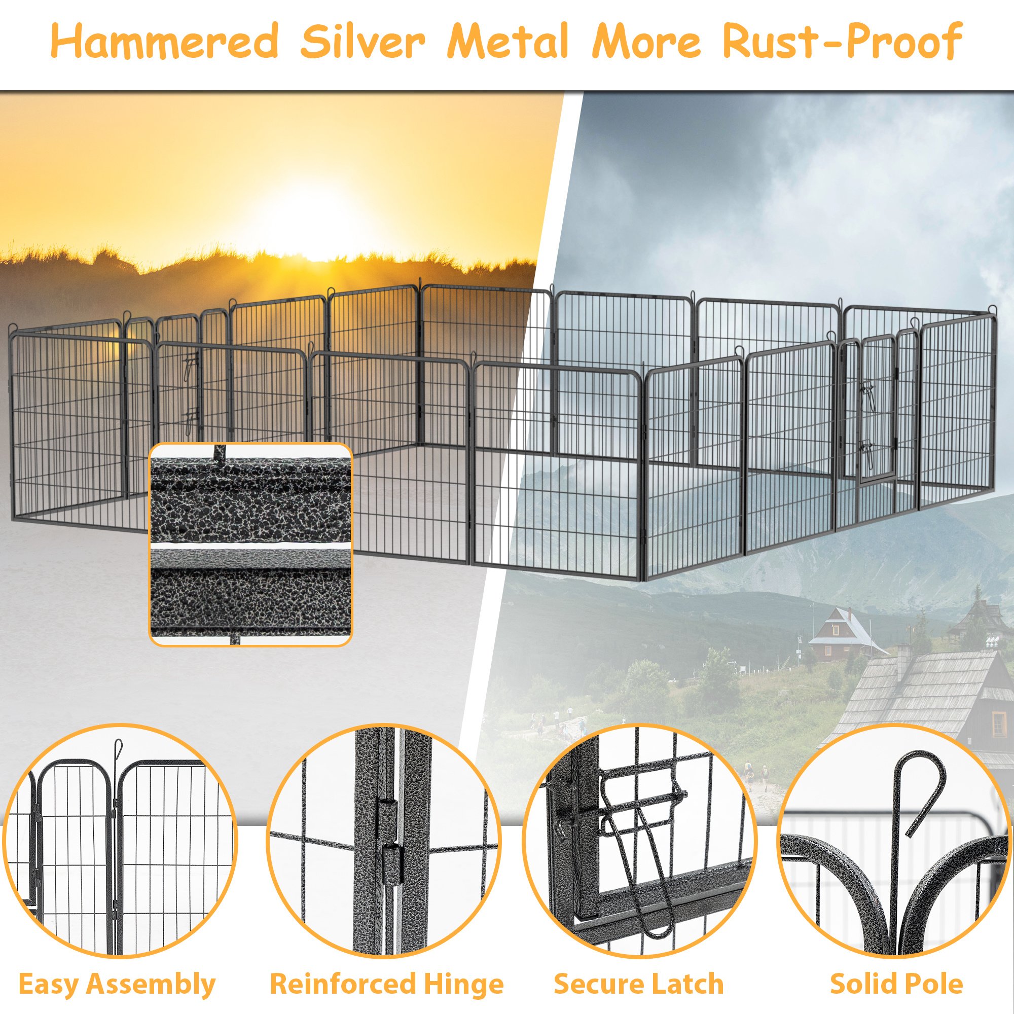 Dog Pens Outdoor 32" Height Foldable 16 Panels Heavy Duty Metal Portable Dog Playpen Indoor Anti-Rust Exercise Dog Fence with Doors for Large/Medium/S