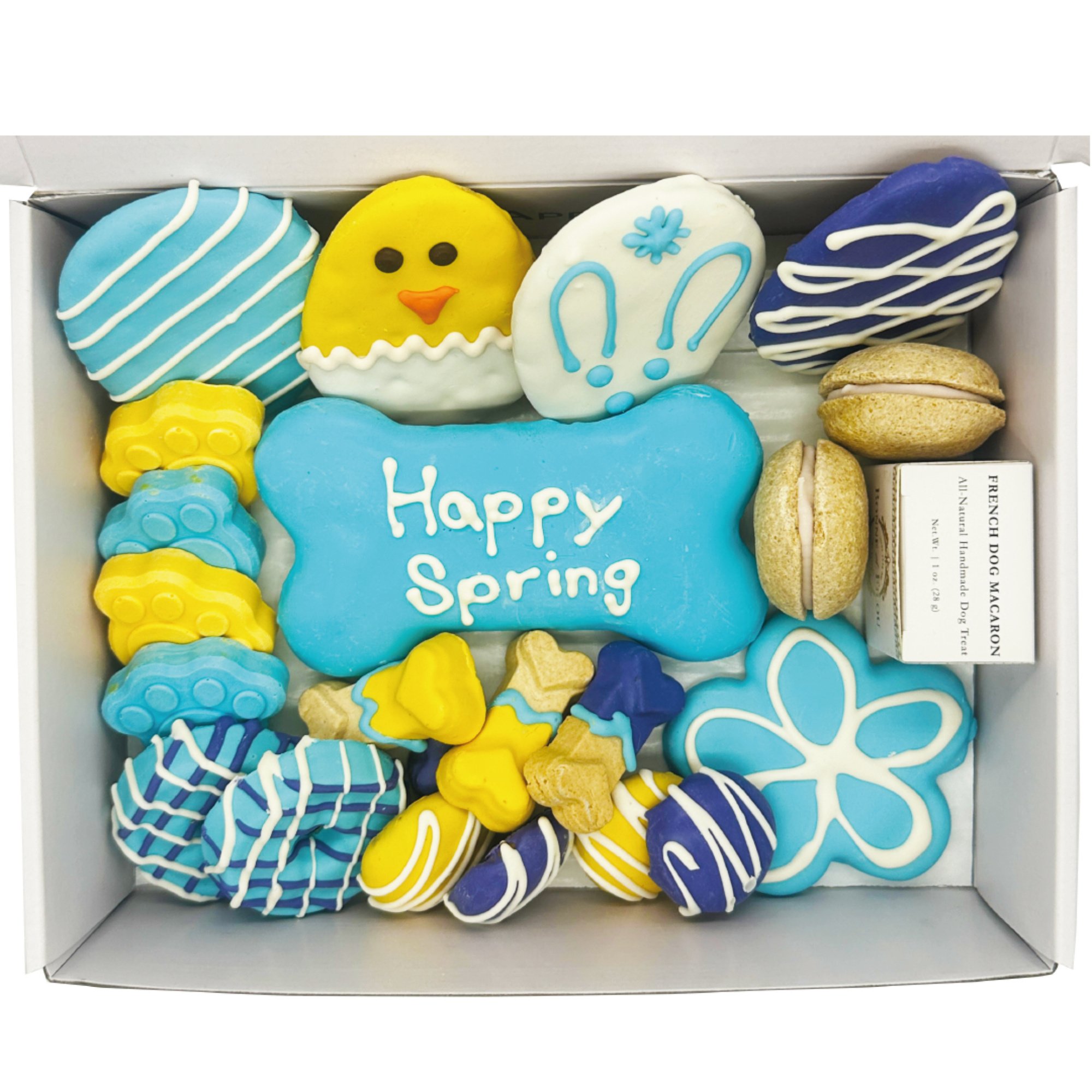 Introducing the ultimate luxury box of spring-themed dog treats! Crafted with human-grade ingredients, these treats make the perfect gift for your pup or another dog lover in your life.