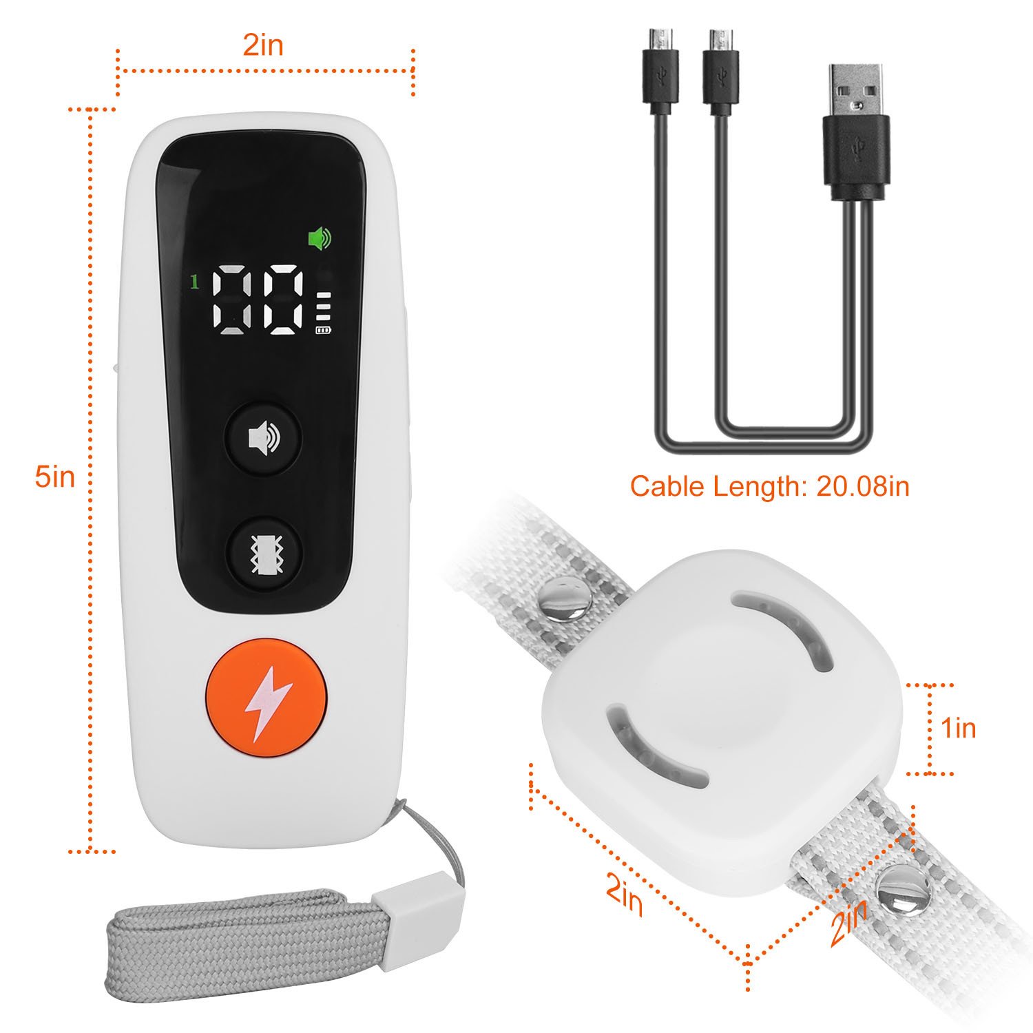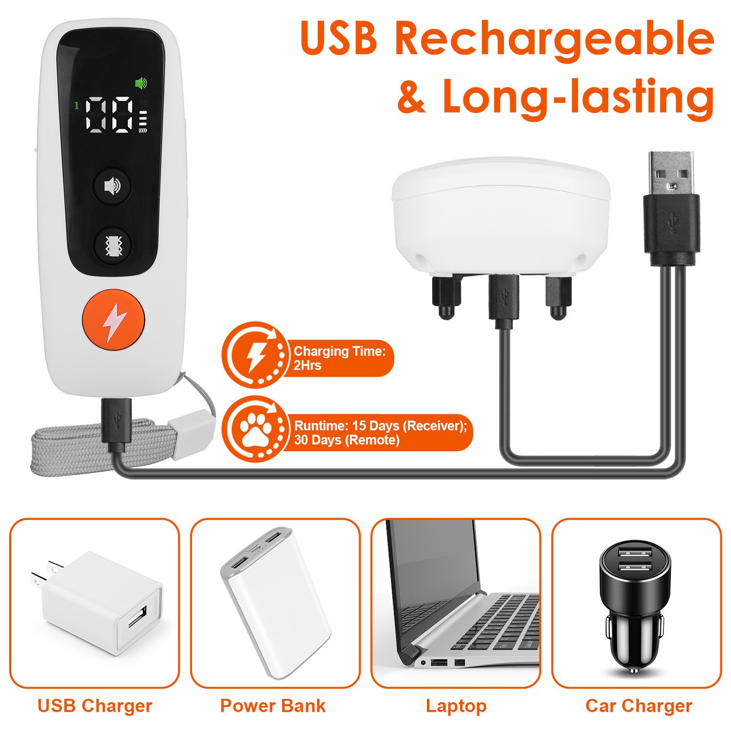 *2 Lighting Modes*:Equipped with lights of red,white and green,the receiver features 2 light modes(Steady on/Flashing),which provides much conevenience when you need to find your naughty dog during night walking. Ensures your beloved dog’s safety.