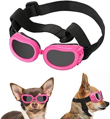 [Material]: the lenses are made of AC resin; spectacles frame using EVA+PC material; durable; lightweight; comfortable; fit for small dogs as daily wear photo props or show; performance wear. Give the greatest eye protection against UV/wind/water/debris. [Flexible band]: adjustable elastic strap can adapt to fit the size of your dog and the chin strap design let you never worry about falling off easily. Head and chin have a precision elastic webbing make an easy to wear. [Wide application]: the dog glasses are suitable for daily wear; photo shot; parties; weddings and holidays; dress up your dog to make it more eye-catching; chic and charming. [Sponge Pad inside]: Sponge is padded around the lenses; high density sponge has a great breathable effect perfectly alleviating eyestrain or the pressure from the glasses and the dog will not feel uncomfortable for long-term wear. [Fit for]: Applicable head circumference: 20-32cm; applicable low jaw circumference: 17-24cm. Weight 1.27oz. Suitable for puppy; Yorkshire Terrier; Dachshund; Poodle; Shih Tzu; Miniature Schnauzer; Chihuahua; Pug; Pomeranian; Boston Terrier; Maltese; Teddy; Bichon Frise; Shorthair; Balinese; etc. (Please measure dog head and jaw size before ordering dog sunglasses.)